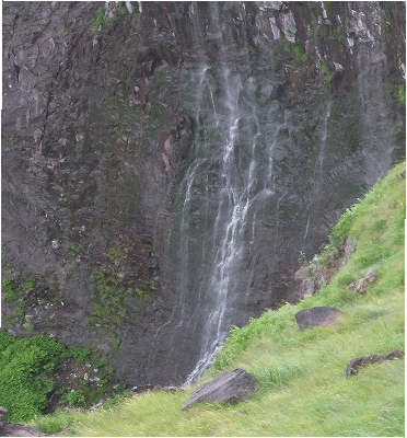 | 垂直に切り立った断崖 割れ目から流れ落ちています。 | ||