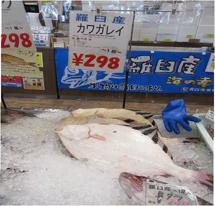 | 羅臼道の駅に寄りました。ここで採れた魚が売っていました。びっくり!大きな生のカワカレーが一匹298円です。大きな真タラが598円です。 | ||