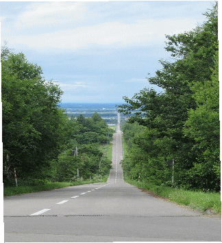 | 楽しむこと出来ます。何処までも続く天の道、網走に向かって走ります。 | ||