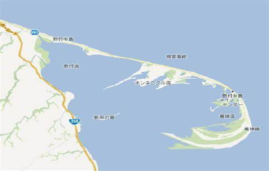 | くちばしのような形をしています。両側には海の挟まています。その間を走ります。 トドワラと呼ばれるものがあります。 | ||