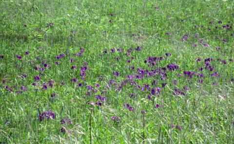 | 岬と花の霧街道の景勝地、広さ約100haの広大な原生花園に約30万株のヒオウギアヤメが咲いています。 | ||