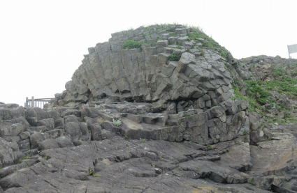 | 花咲灯台下の海岸にある巨大玄武岩柱状節理の一種です。放射状に広がっているものは世界中でも珍しく | ||