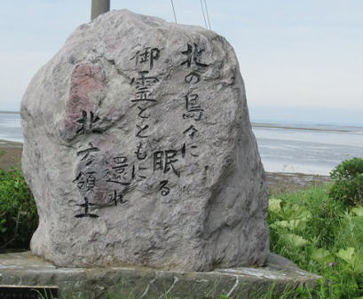 | 近くて遠い島、島の人の願いもむなしく帰ってこない島々です。 4島の架け橋をはじめとする数々の碑やモニメントがありました。 | ||