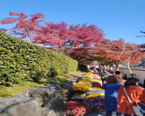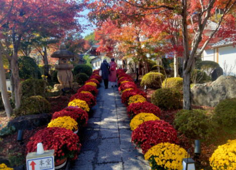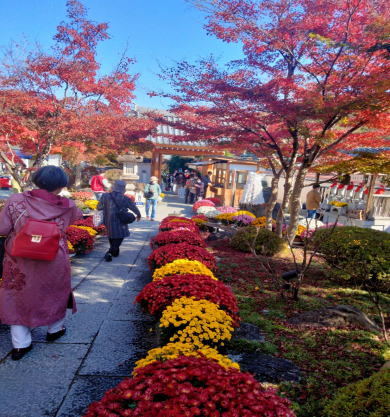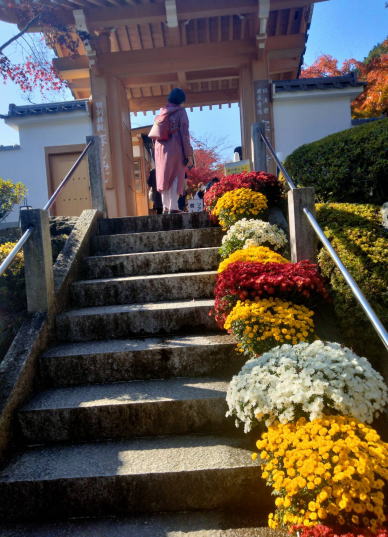 私達がちょうど良い時期に行きました。 綺麗な菊の花で飾られた山門でした。 |