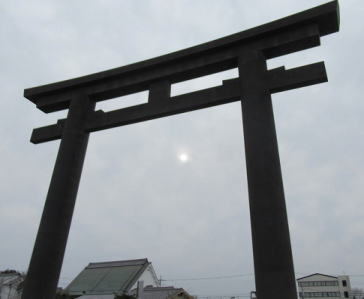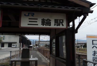 三輪そうめんで有名な街、三輪駅を見て 通りを走っていると巨大な鳥居が目立っています。 |