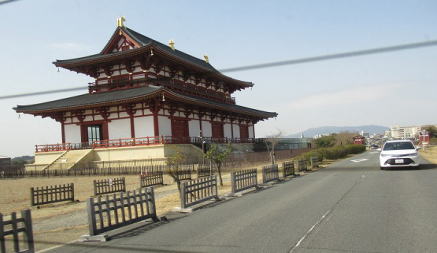車で周りを巡りましたが、凄い広さに驚きました。平城宮最大の宮殿、第一次大極殿が堂々と建っておりました。 |