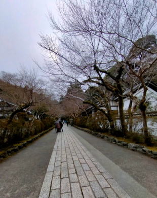 | 参道の左右には綺麗に揃った桜の木がとても綺麗でした。花はまだ早いようでした。 |