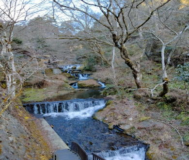 谷川を堰き止めた人工池を中心に広大な庭園とその関連建物からなっています。 |