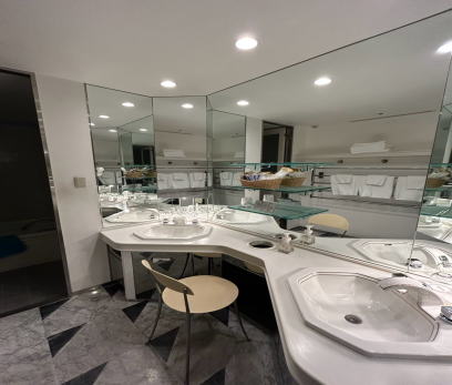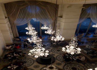 ビックリ 素敵な洗面所 レストランのシャンデリア お食事も美味しく最高でした。 |