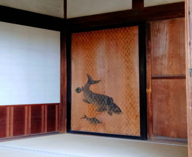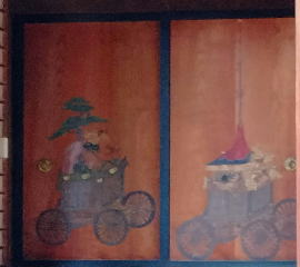 板戸には祇園祭の鉾の絵を描いた狩野敦信 、鯉の絵は円山応挙と伝えられています。 |