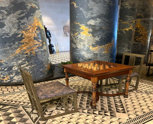 天井を支える24本の柱は、石骨擬石技法と呼ばれる特殊な技法で作られています。柱は一本一億円するそうです。 |
