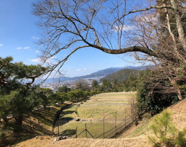 京都の市街地や周囲の山々、素晴らしい絶景です。遠くに見える山々も修学院離宮の物だそうです。 |