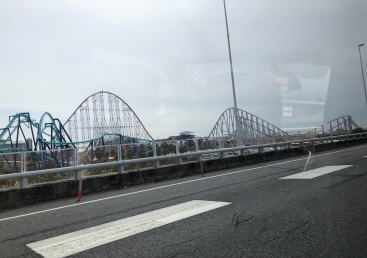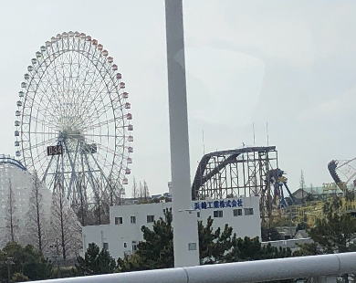 お兄ちゃん運転で京都に向かっています 高速から長島遊園地が見えます |