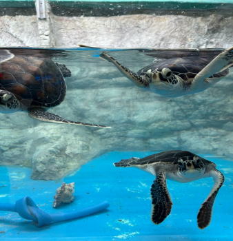 ウミガメハウスでは、飼育しているウミカメや、熊野灘や海辺の生き物を飼育するプールや水槽で |
