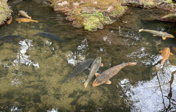 観察する事が出来ます。 餌を買って亀に与えて楽しみました。 |