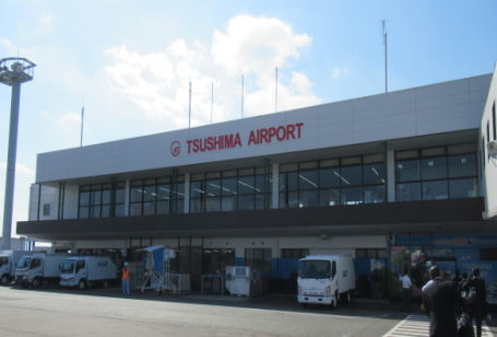 福岡空港からはプロペラ機で小さい飛行機でした。対馬空港で、予約してあったレンタカーを借りました。 |