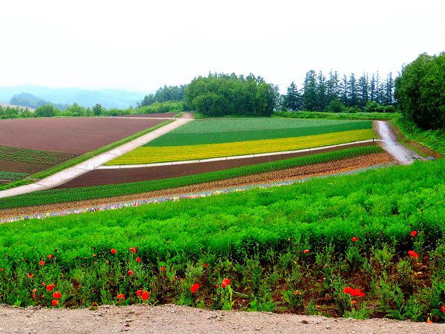 | パッチワークの路にケンとメリーの木、セブンスターの木、北西展望台が美瑛にありました。 | ||
