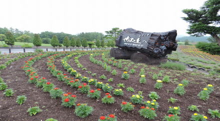 | 走っていましたらゼルブの丘がありました。時期的に花が植えたばかりのようで綺麗に並んでいました。 | ||
