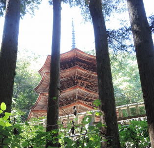 三重塔は 「見返りの塔」という名で親しまれています。この名は塔があまりにも美しいので、思わず振り返るほどであるという |