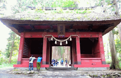 その先は天然記念物にも指定されている樹齢約400年を超える杉並木が続いています。 |