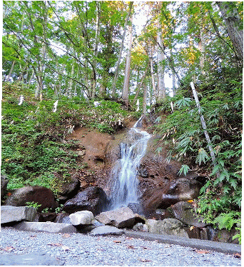 社殿の横にはさざれ滝、強い浄化パワースポットとして有名です。 |