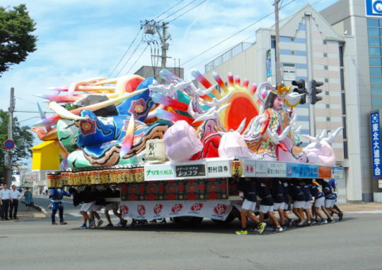 総数約80台の県内最多のねぷたがくりだされます。そして大きな太鼓を響かせて、大勢の人がおどります。国の重要無形民俗文化財に |
