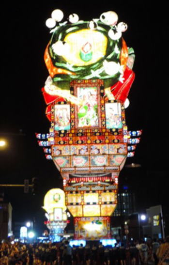 弘前四大まつりの一つである夏まつり、武者絵が描かれた山車を引き練り歩きます。ねぷたには扇ねぷたと組みねぷたがあります。 |