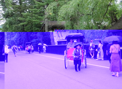 歩道が見学する場所になっていました。とても良い場所に座れてゆっくりと目の前で見ることができました。 |