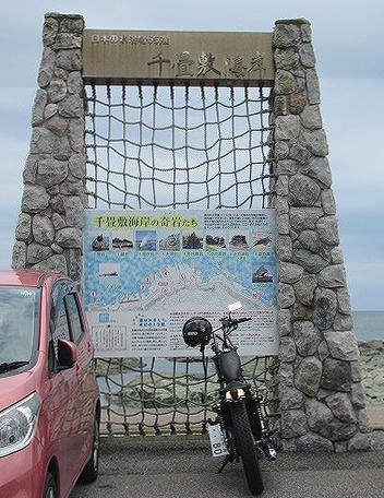 日本海に面しています。ここから先を見ると大きな岩に階段があり登ることが出来そうなので行ってみました。美しい海の中に道が出来ています。 |