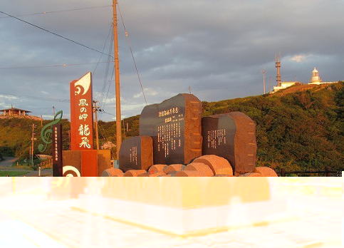 海峡を行き交わる船舶が見えます。石川さゆりさんの津軽海峡冬景色の碑が建っており歌が流れるようになっています。空の色が綺麗になってきました。 |
