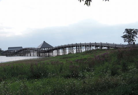 全長300mのこの橋は三重太鼓橋では日本一長い木の橋であります。優しいアーチは新しい魅力となっています。 |