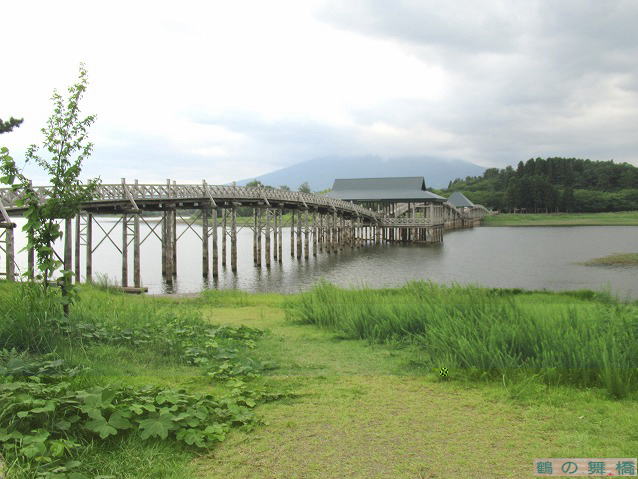背景には岩木山が見えております。とても美しい景観です。橋の上を渡り楽しみました。 |