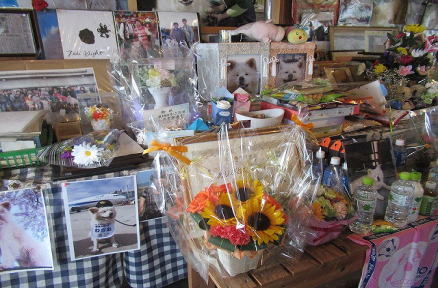 店の中にはわさおの仏壇が出来ておりましていろいろな物が並べてあります。お店の売り物かと思いました。 |