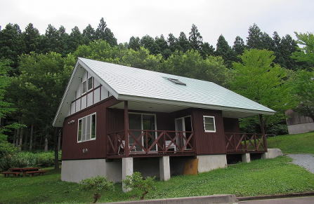 あじゃら山麗の広大な丘陵を目の前に臨む、1軒のケビンが借りられました。ここにも遅くなってしまい生寿司パティーで最後の夜を楽しみました |