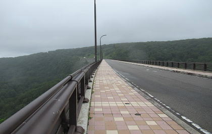 城ヶ倉大橋は、全長360m、高さ約120mという日本一の上路式アーチ橋です。 |
