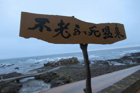 黄金崎不老ふ死温泉に4時過ぎに着きました。日本海の荒磯にたたずむ1軒宿、目の前に広がる日本海の大海原を眺めながら |