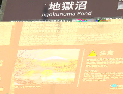 流黄を多く含んだガスや温泉が噴出してます。沼は綺麗で周囲にある木々を写しでしています。沢山の人々が写真を撮っていました。 |