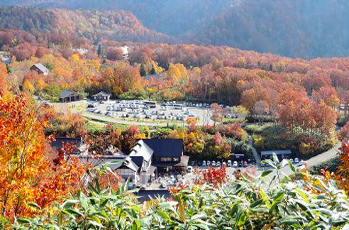 ホテルから朝一番でハ甲田山ロープウェイ乗り場までバスで送ってくれました。天気も良く晴れておりまして周辺の紅葉もきれいでした。 |