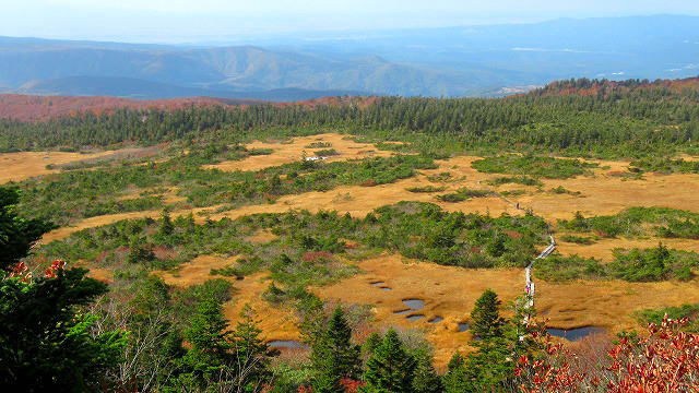 どこまでも続く景色の素晴らしさに感動しました。下に降りて下毛無岱、上毛無岱の湿原歩き赤倉岳、井戸岳、大岳の紅葉を楽しみました。 |