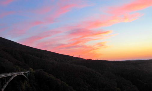 橋に移った影 眼下の渓谷 橋から見た夕焼け |