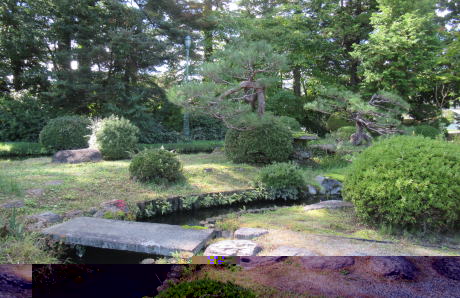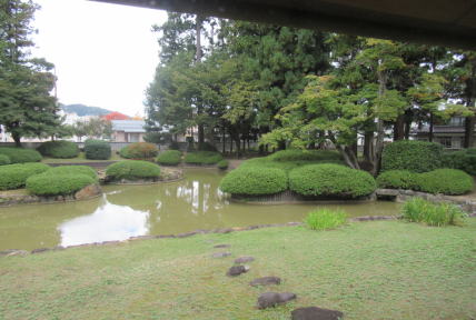 | お庭には松の木が何本か選定されて、池があり日本庭園になっておりました。国の登録文化財になっております。 |