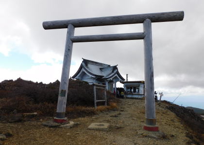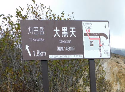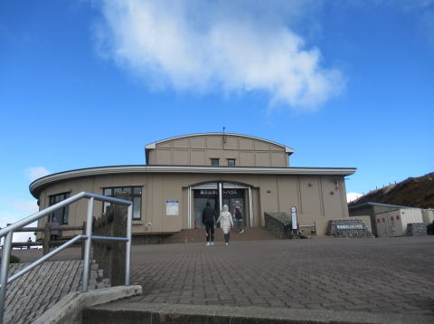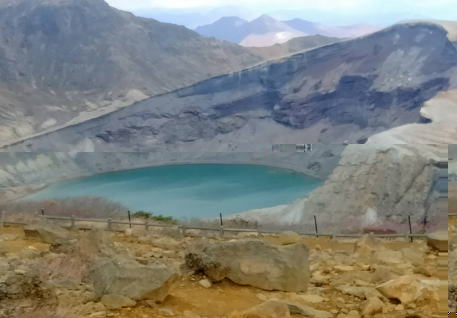| 駐車場から歩いて5分でお釜を望む展望台に到着します。 |