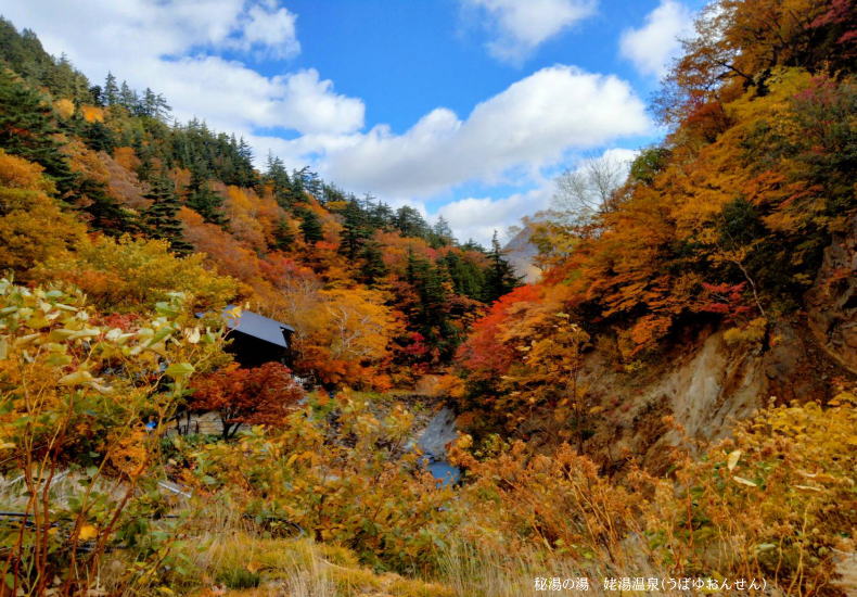 | 吾妻連峰の北側、標高1300m奥深い谷間 姥湯温泉に着きました。 |
