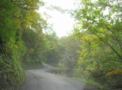 | 山道を走ります。道幅が狭く、急な山坂が厳しくなりました。 |