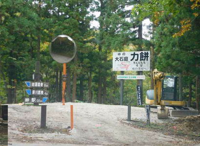 | ここからが益々山が険しく道幅が狭くなり、車同士がすれ違いが出来きない道に入って行きます。車が来ない事を祈りつつ走りました。 |