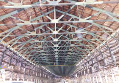 | 初めて見た重厚な鉄骨造られたスノーシェルターの大きさに驚きました。山奥にある峠駅です。 |