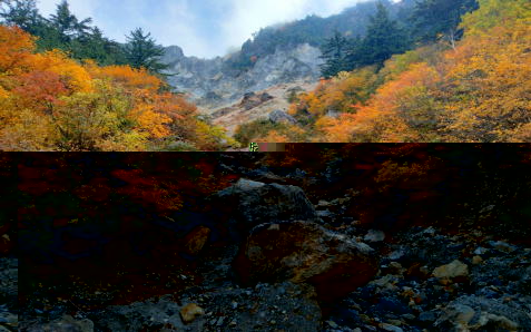 | 周りの山々は何処を見ても紅葉が美しく、なかなか離れがたい光景です。 |
