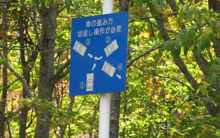 | 隣に座っていてもブレーキを踏んでいます。この山道でも曲がることが難しくスイッチバックしながら登ります。 |
