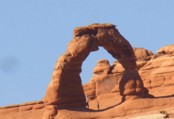 ここまで行くのにはトレイルを2.4k歩きます。勾配きついそうです。私たちは望遠でアーチを