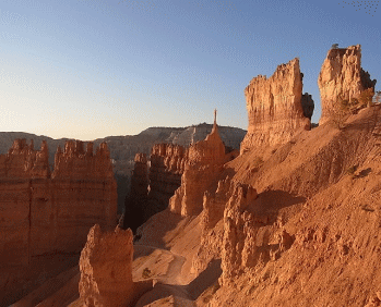 微妙に変化することから「ピンク・クリフ」とも侵食されてきた結果できた、いくつもの小峡谷によって